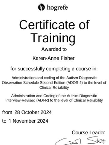 I am qualified in administering the ADI-R and ADOS-2 and in the diagnosis of autism in children, adolescents and adults. Children from 18 months can be assessed using the toddler module.